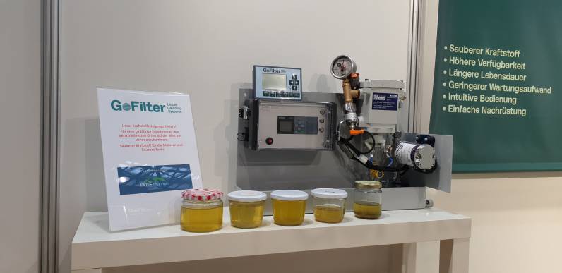 Die beiden Gründer von GoFilter, Marcel Stosch und Benjamin Dzaack, mit ihrer intelligenten Filteranlage, die automatisch den Kraftstoff in Intervallen filtert.