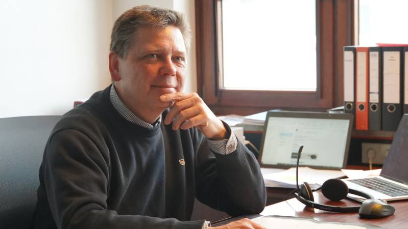 Andreas Kühne, Geschäftsführer von Kilomatic Wiegetechnik, hier in seinem Büro in Hannover