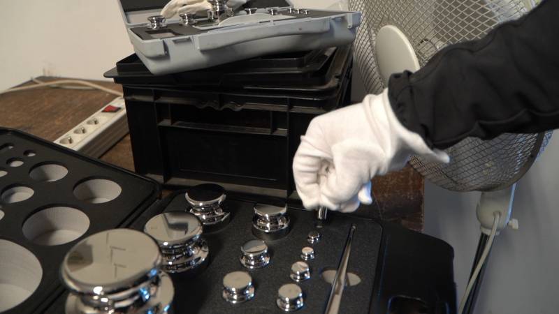 Die Hochpräzisionsgewichte für kleine Waageelemente dürfen nur mit Handschuhen berüht werden