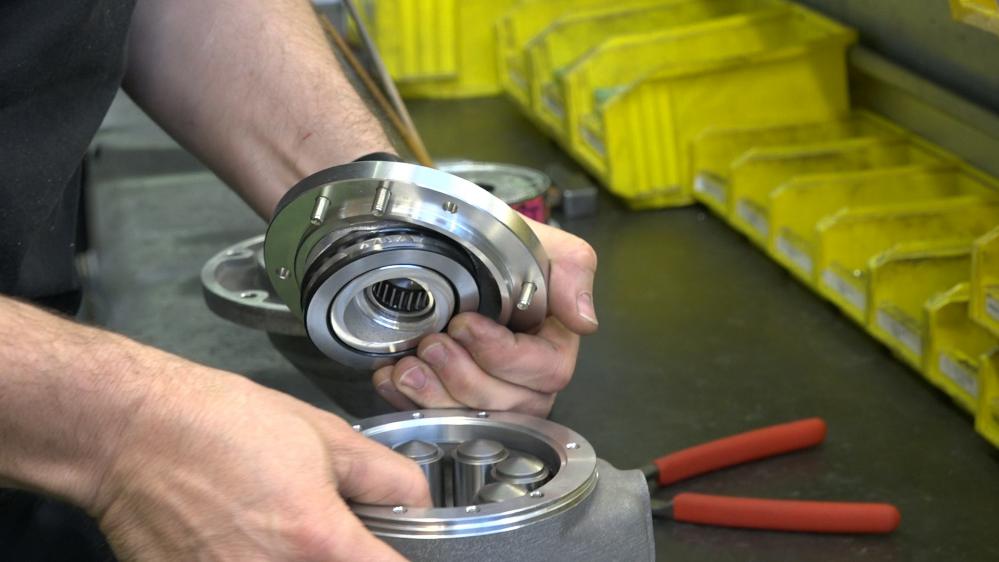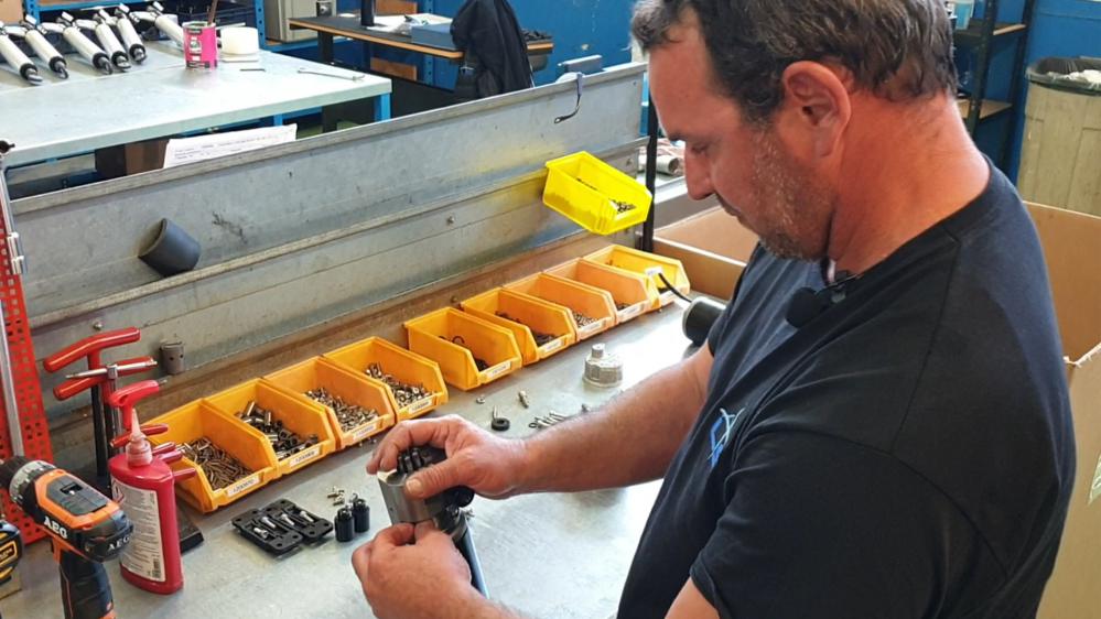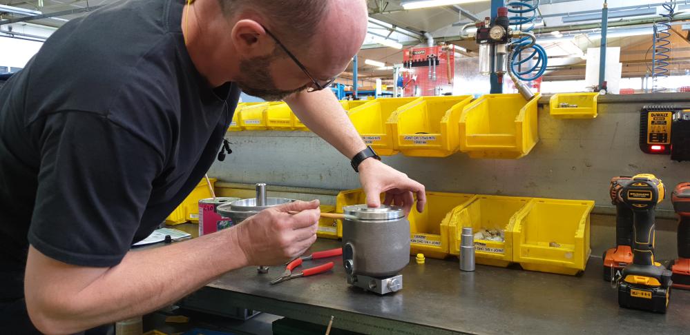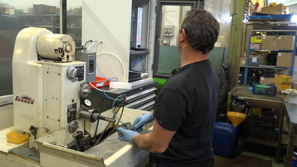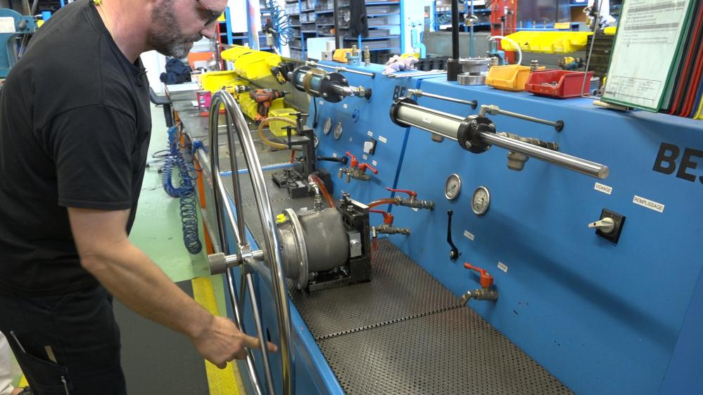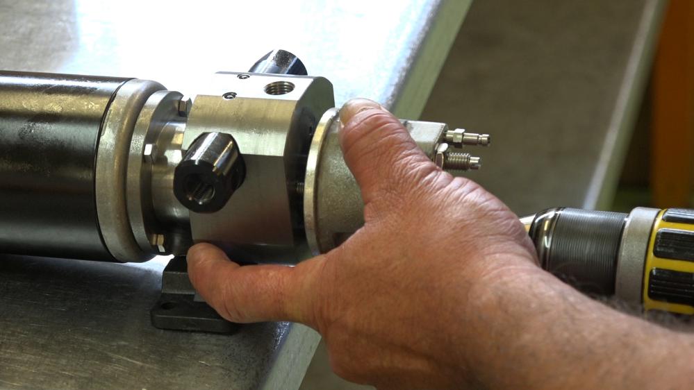 Schleifarbeiten am Hydraulikelement vom Autopiloten