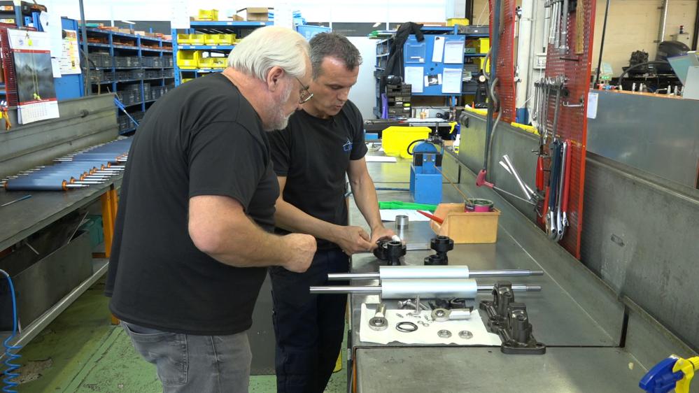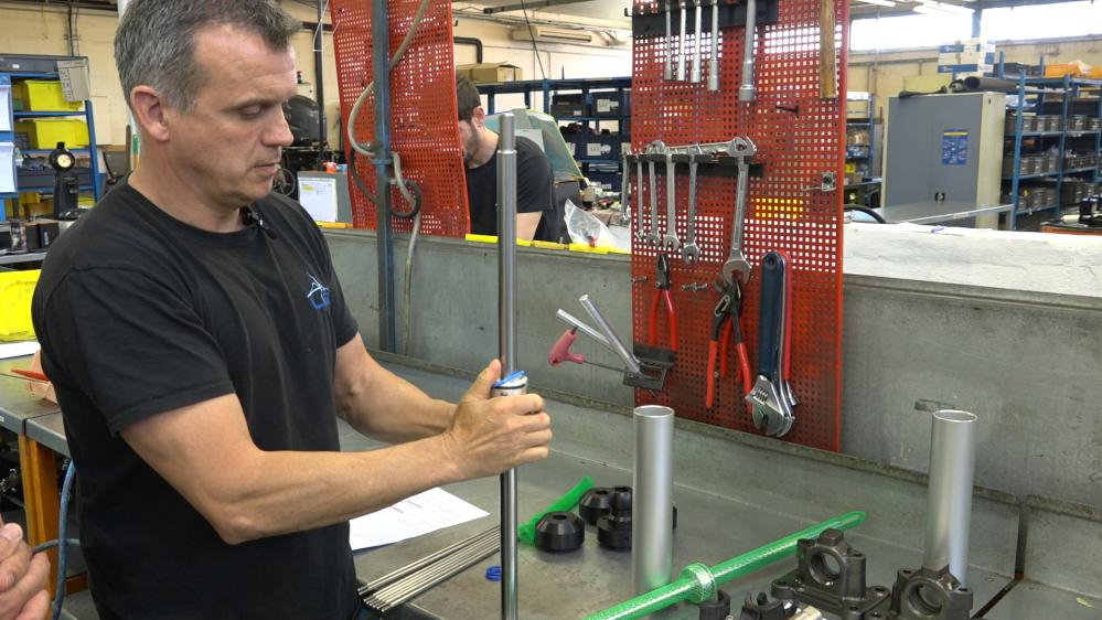 Frank baut unter Anleitung von Laurent den zweiten Zylinder für unser Boot zusammen