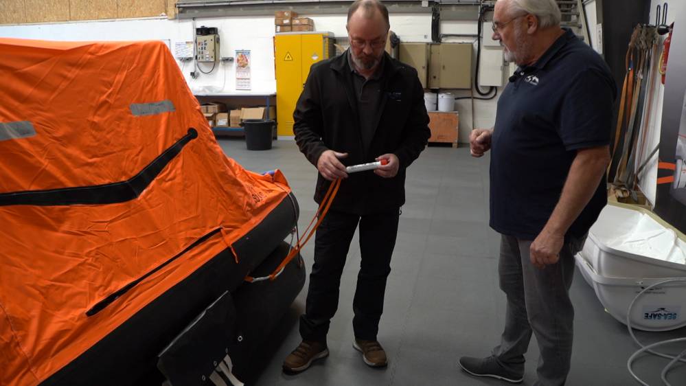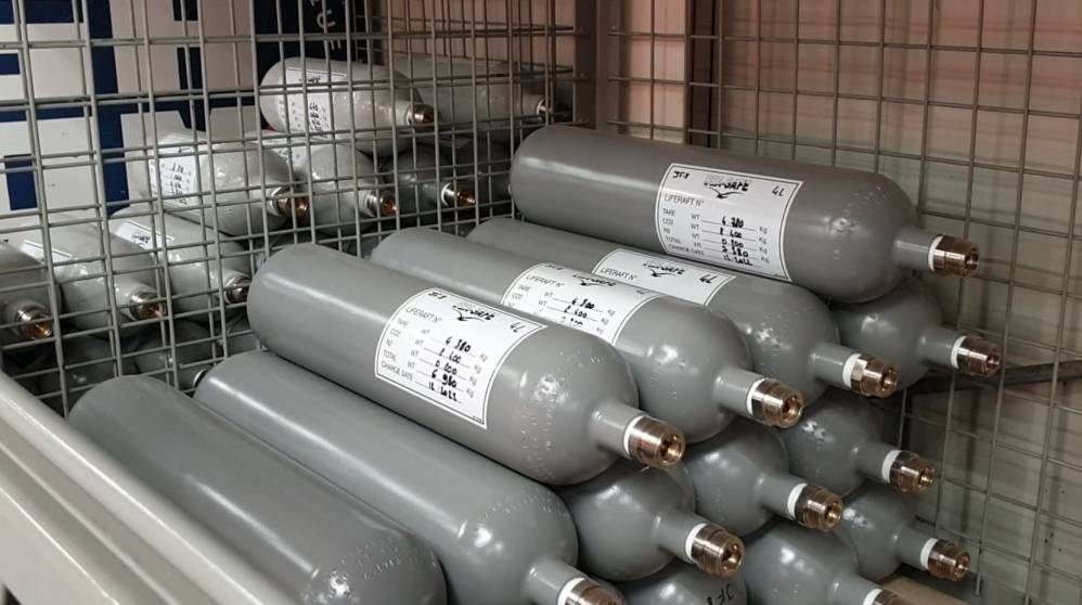 Um eine Rettungsinsel aufzublasen, braucht es eine Gasflasche mit einem Gemisch aus CO₂ und N₂.