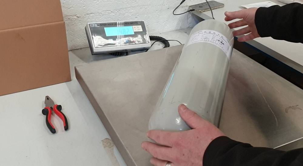 Bei einer Überprüfung wird immer die Gasflasche gewogen. Wenn sie weniger wiegt, als auf der Flasche angegeben, weiß man, dass sie undicht ist und somit ausgetauscht werden muss.