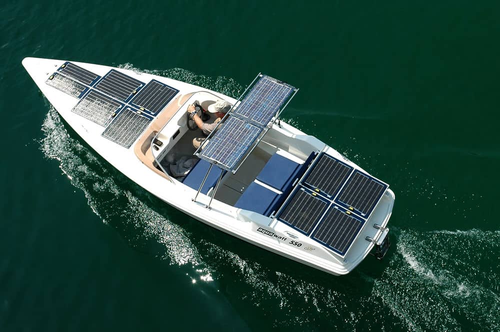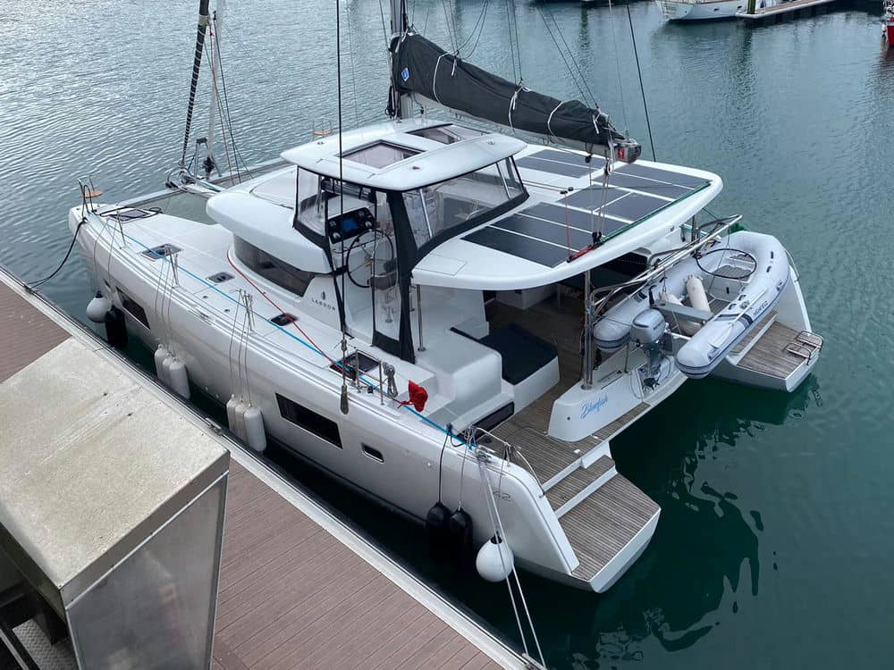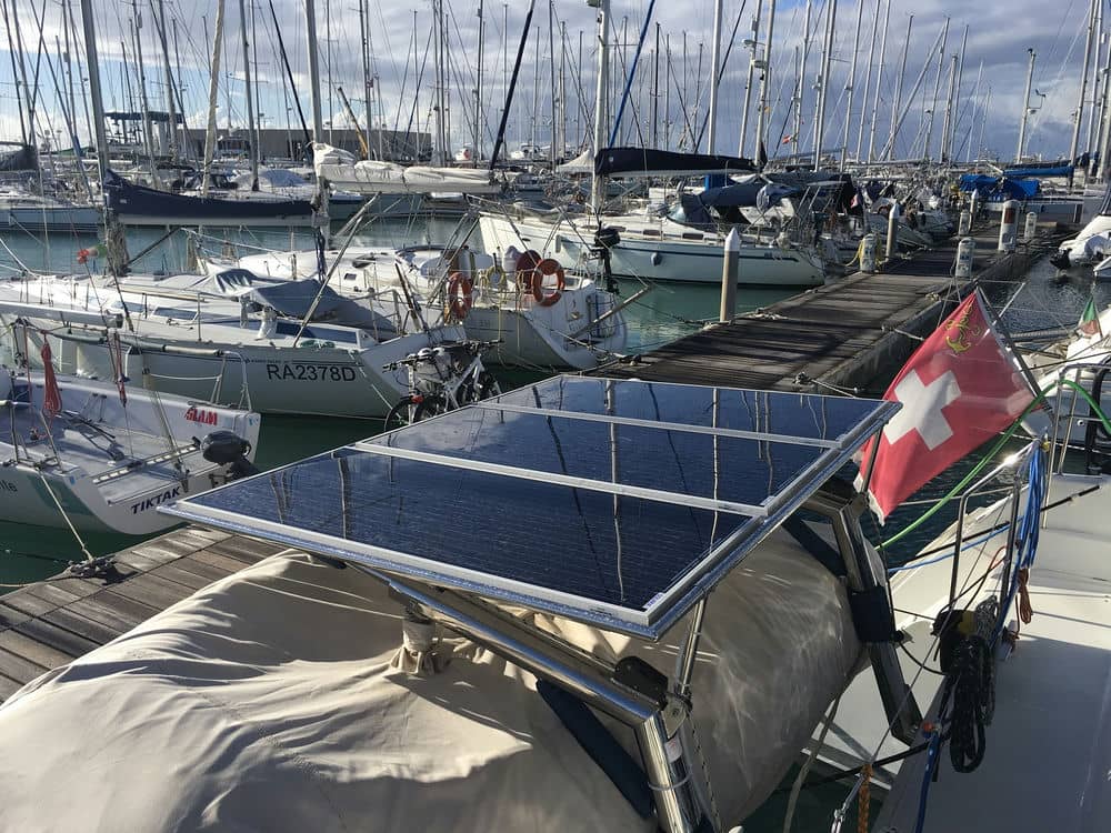 Eine Power M-Solaraserie auf einem Reisekatamaran