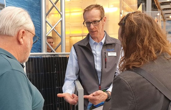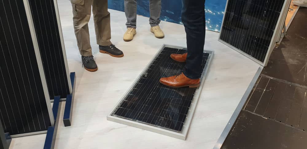 Frank Heise erklärt, wie robust die Solarmodule aufgebaut sind: Sie zu begehen, ist kein Problem