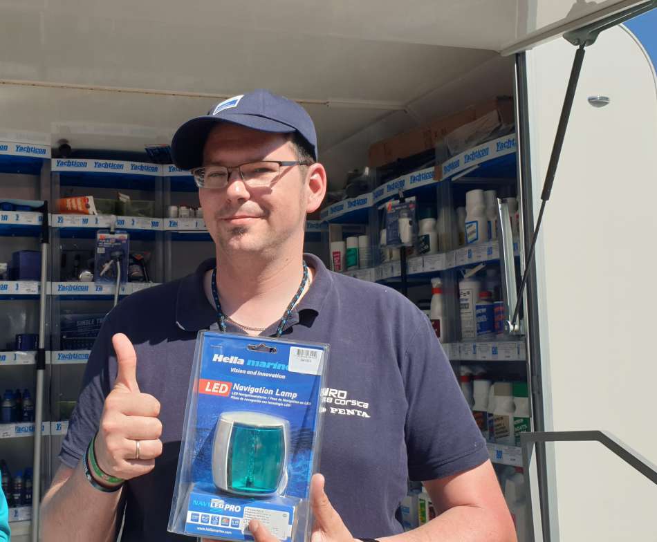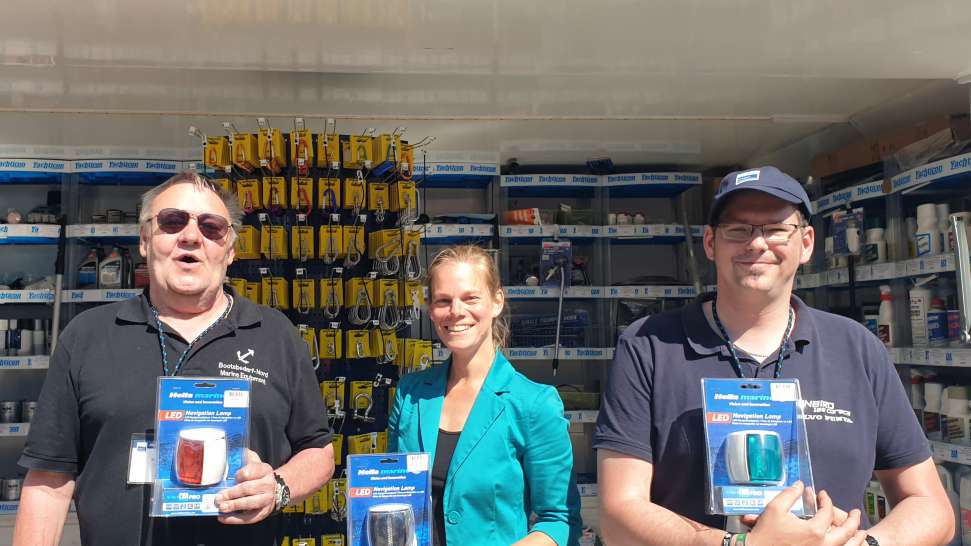 Nach einem kurzen Telefonat und einem Besuch auf der Wassersport- und Freizeitmesse in Rostock sind Frank Leuth (Geschäftsführer) und Jean-Michel Bauer von Bootsbedarf Nord aus Stockelsdorf mit im Boot. Alle Positionslichter haben sie für unseren Forschungskatamaran zur Verfügung gestellt.