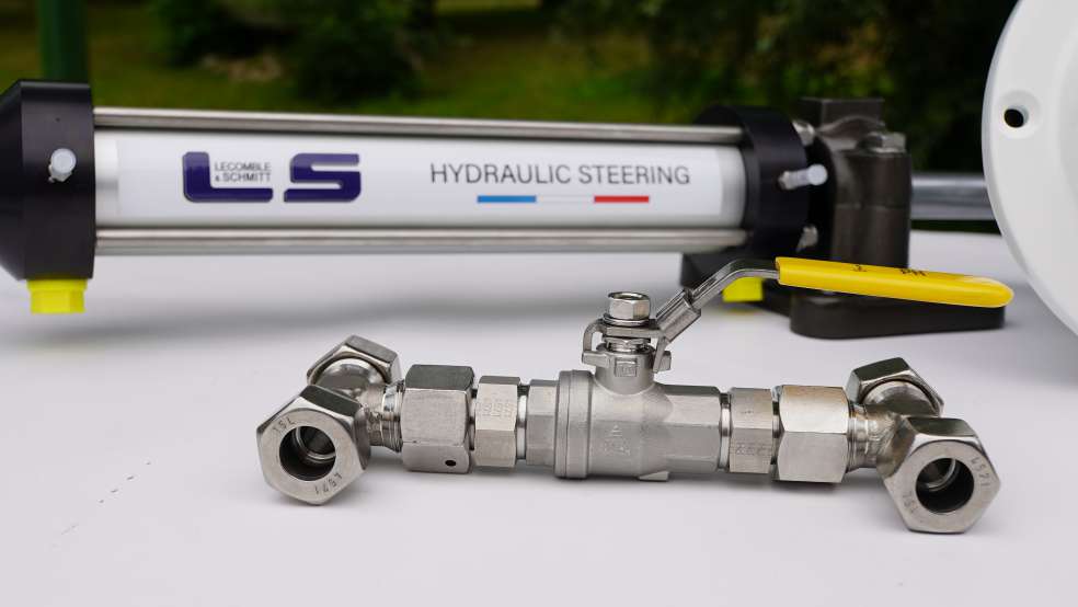 Die französische Firma Lecomble & Schmitt hat ihr Wort gehalten und unterstützt uns mit der kompletten hydraulischen Steueranlage: Steuerrad, Steuerpumpe, Hydraulikarme, Rudersektoren, alle Ventile und Steuerregler sowie der hydraulische Antrieb unseres Autopiloten sind letztens geliefert worden.