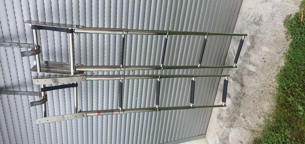 Die beiden Badeleitern aus V4a, hier ein Modell, erlauben Tauchern und Badenden einen sicheren Zugang zum Wasser.