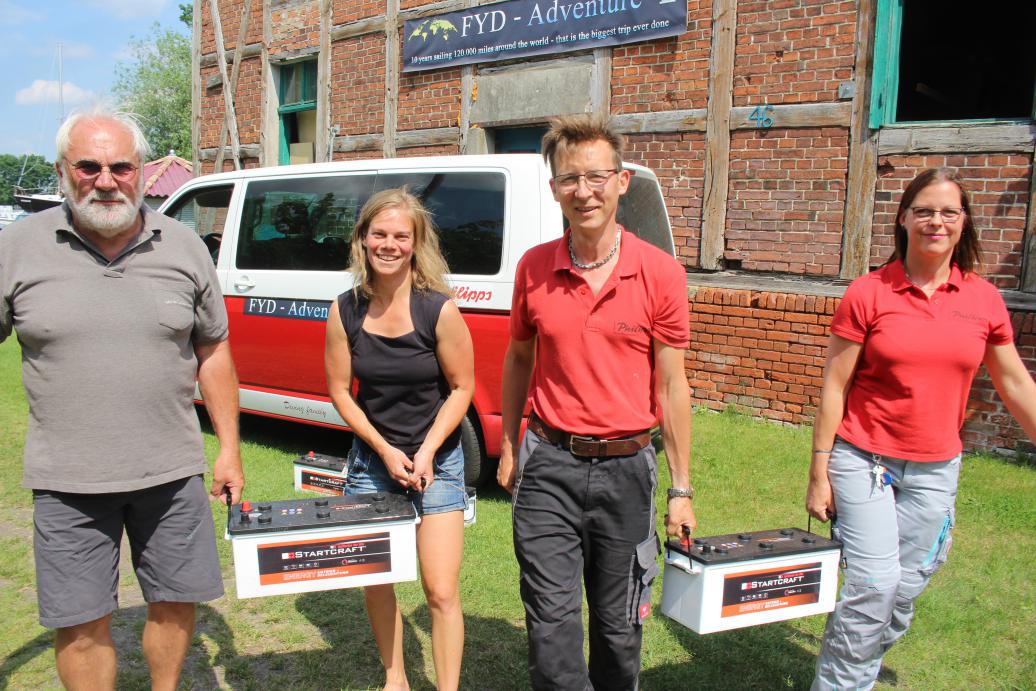Jetzt haben sie auch ihr privates Portemonnaie für FYD-Adventure geöffnet und uns vier große 150 Ampère Spezialbatterien gespendet.