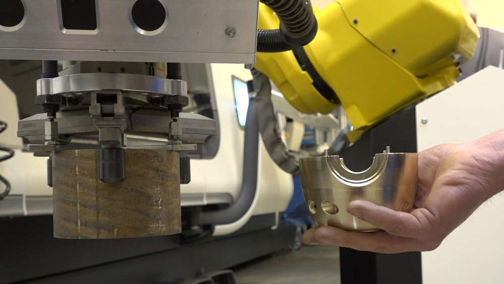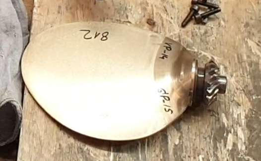 Aus einem Bronzerohling wird das Gehäuse für den VariProp gefräst.