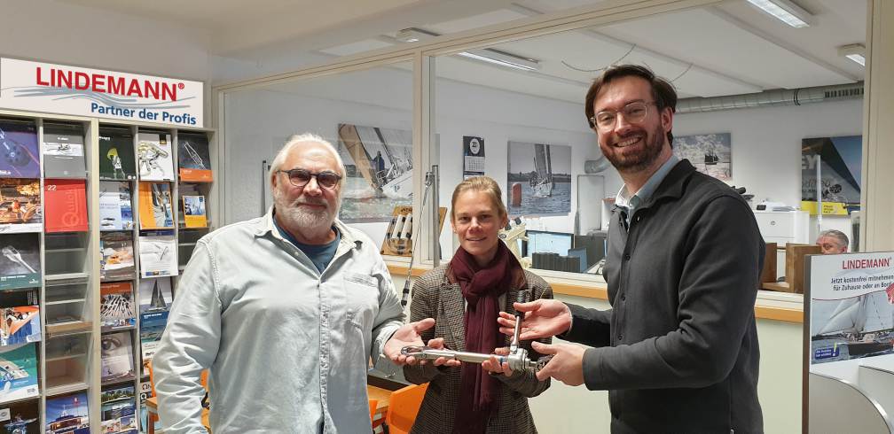 Frank und Anna von FYD-Adventure mit Björn Rump (CEO Sailtec) im Austausch über ein Detail, das den Unterschied macht.