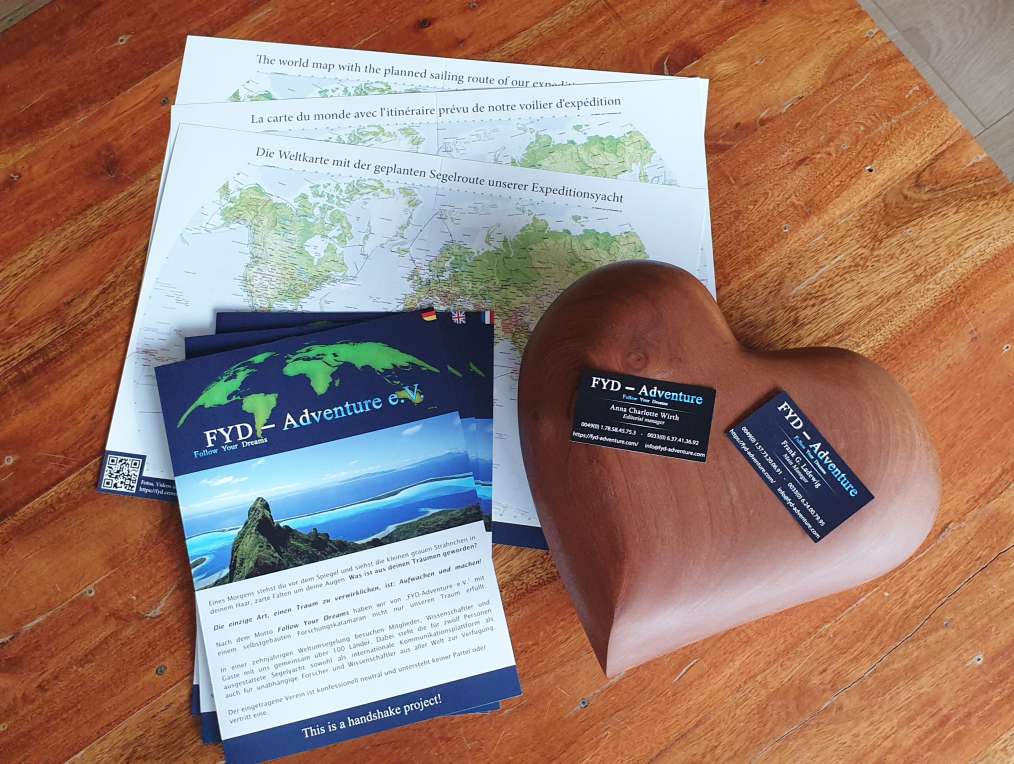 Ein Herz für gute Gestaltung: Visitenkarten, Broschüren und Weltkarten – alles hochwertig gedruckt von Paulus & Partner GmbH. So wird unsere Mission greifbar, verständlich und weltumspannend kommuniziert.