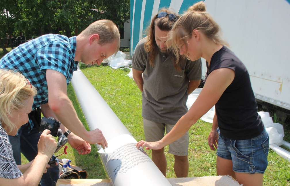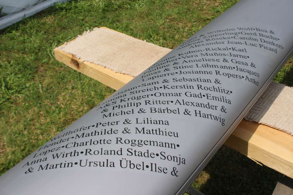 Übrigens: Ein ganz besonderer Teil dieser Zusammenarbeit war die Beschriftung unseres Masts – mit den Namen unserer Unterstützerinnen und Unterstützer.