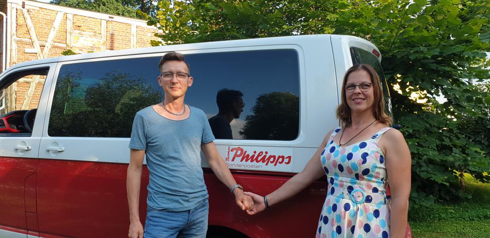 Bea blickt mit einem zarten Lächeln zu ihrem Mann und sagt liebevoll: „Wir machen alles gemeinsam!“