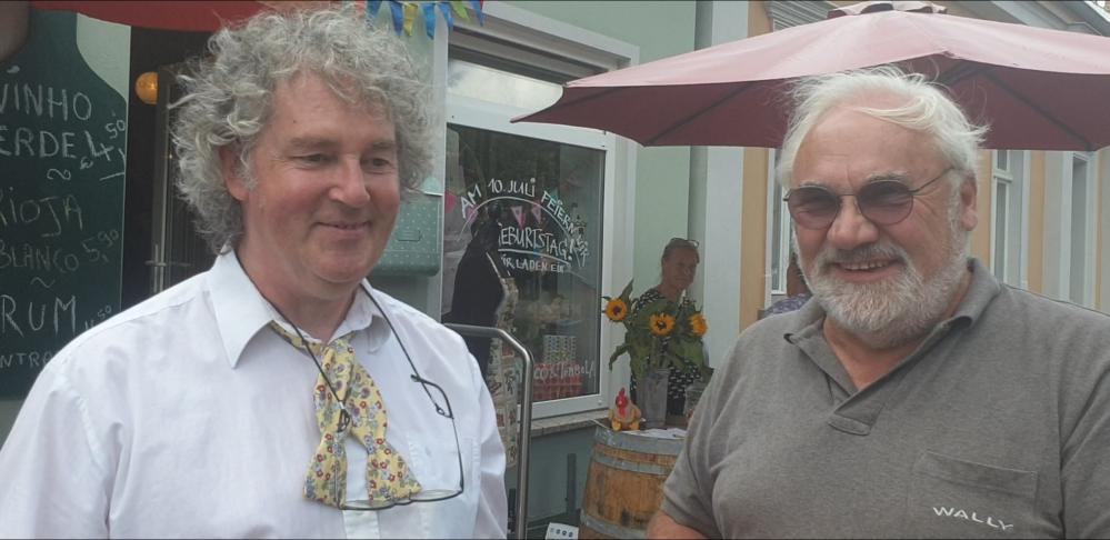Frank Uhlig von Softline (links) mit Frank Ladewig von FYD-Adventure im vertieften Gepräch: