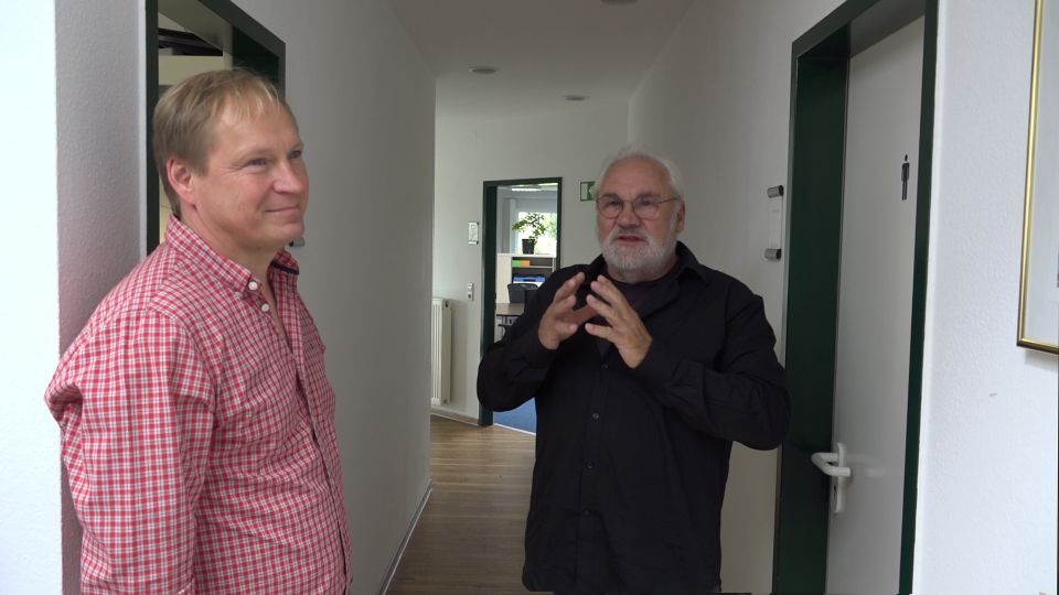 Sven Rosenberger, Geschäftsführer von Liros, und Frank beim Interview.