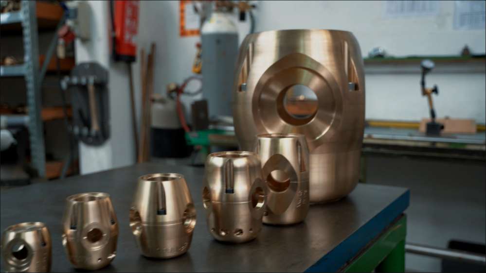 Hier die Gehäuse der unterschiedlichen Propeller - ausgelegt bis zu Motorenstärken von 750 PS.